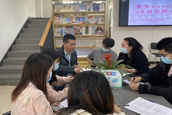 明确要求,筹备工作。商讨伊始,张瑜服务队负责人王湛宇介绍了张瑜服务队目前开展的“绿意入户,园予暖阳”、“五育并举,科普‘瑜’你”、“社区手牵手,共创美好家”、“品茗赏韵,情暖夕阳”四项志愿服务项目与张瑜服务队组织架构、人员分工。
