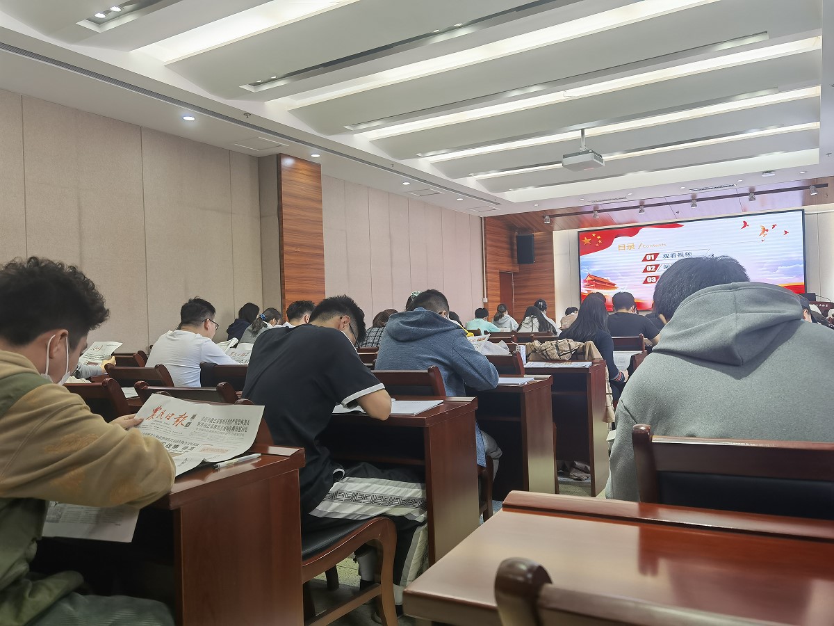 4月7日中午,英国365集团公司组织大学生于南楼204会议室进行了周四理论学习。本次理论学习分为视频学习、自由读报和理论知识有奖竞答三个环节。