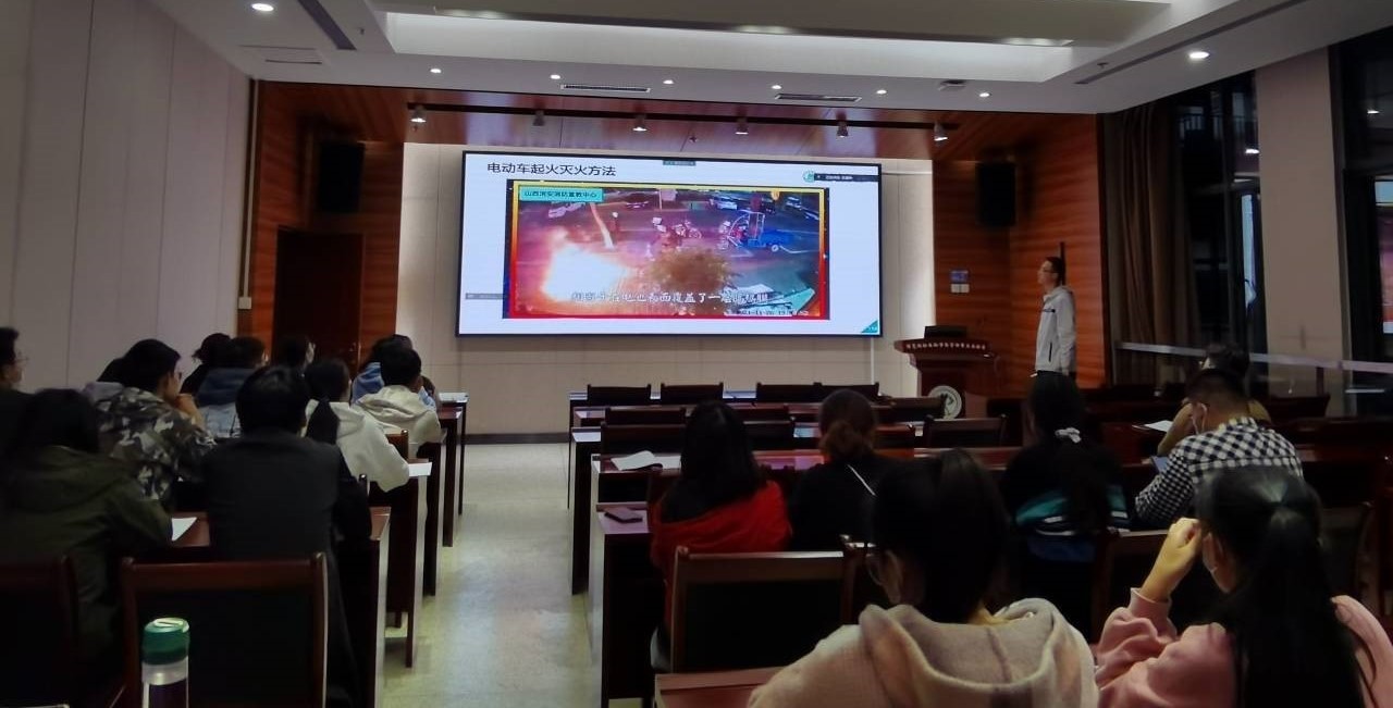 随后,王清伟播放了消防安全教育视频,他谈到,据应急管理部通报,全国一季度共发生电动自行车火灾3777起。王清伟提醒同学们,夏季来临,气温逐渐升高,因电动车充电不当、电池老化等引发火情事件时有发生,同学们务必规范使用电动车,提高防范意识。