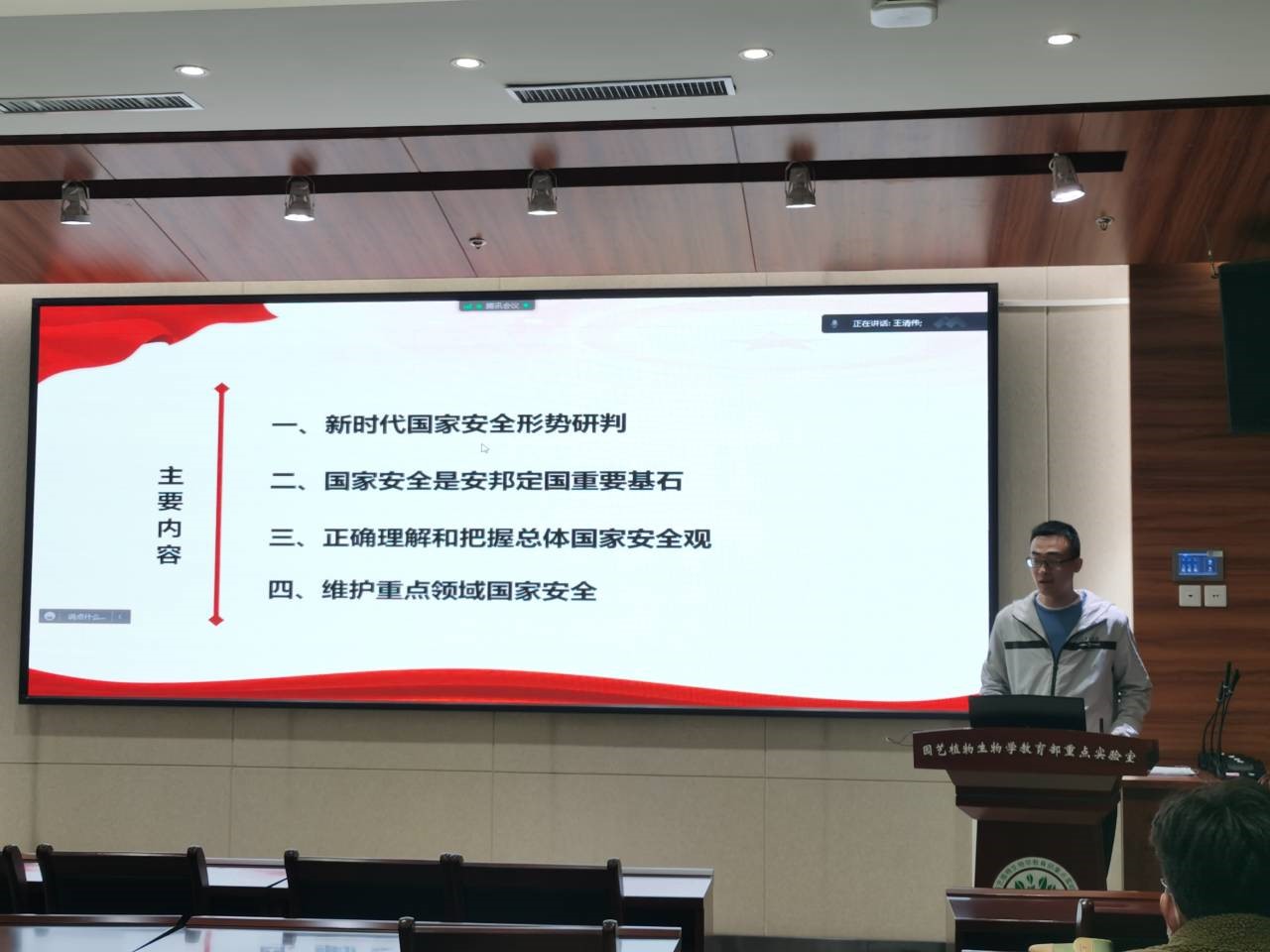 首先,王清伟从国家安全入手,向同学们分别介绍了新时代国家安全形势研判、国家安全是安邦定国重要基石、正确理解和把握总体国家安全观、维护重点领域国家安全等四个方面内容,让同学们都意识到要充分发挥人民群众在维护国家安全方面的特殊重要作用,打造人人有责、人人尽责的国家安全共同体。