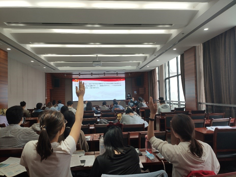 以奖促学,提高学生参与度。最后环节采用竞答方式以巩固大家的学习成果,学院准备了最新一期的《求是》作为奖品相送,现场同学们争相回答,学习热情不减,会后有序离场,本周理论学习顺利结束。