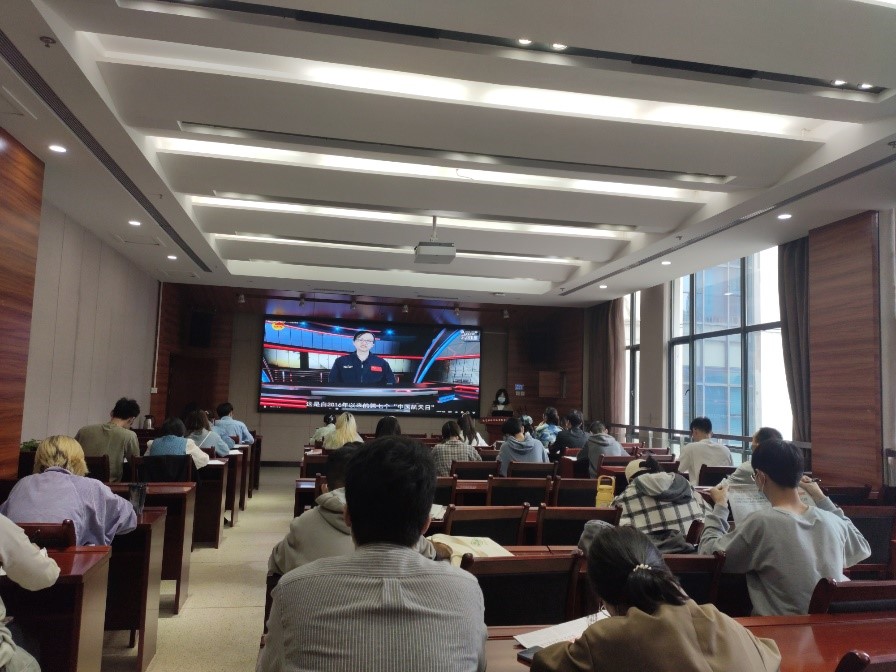 共同观影,深度思考。本次活动,在场同学共同观看了“理想高于天,青春梦启航” 主题思政课视频。在视频中,同学们共听习近平总书记谈航天梦,走进“神州十三号”。2016年4月24日,习近平总书记在首个“中国航天日”到来之际作出重要指示:“探索浩瀚宇宙,发展航天事业,建设航天强国,是我们不懈追求的航天梦。” 党的十八大以来,习近平总书记高度重视我国航天事业发展,多次谈到“航天梦”,对航天事业发展作出一系列重要部署。今年4月12日,习近平总书记在视察海南文昌发射场时提出了要大力弘扬“两弹一星”精神、载人航天精神,坚持面向世界航天发展前沿、面向国家航天重大战略需求,强化使命担当,勇于创新突破,全面提升现代化航天发射能力,努力建设世界一流航天发射场。影片带大家回顾了“神舟十三号”的高光时刻,通过安居篇、足食篇、丰衣篇、乐业篇四个篇章,同学们了解了“神州十三号”的基本知识,认识到了伟大事业孕育伟大精神,伟大精神引领伟大事业。从“两弹一星”、“嫦娥”问月,到“北斗”指路、“天宫”揽胜、“天问”探火,再到“神州”系列遨游苍穹,一代代航天工作者不仅创造了举世瞩目的伟大成就,更培育和形成了“特别能吃苦、特别能战斗、特别能攻关、特别能奉献”的载人航天精神。我们青年一代要学习载人航天精神,自立自强、创新超越,让青春在奋斗中闪光。