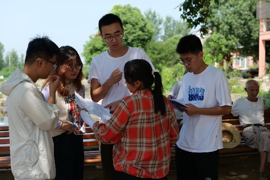 团队成员深入村庄与村民进行面对面访谈。大家开展访谈的第一站叫陡山湾,因为天气炎热,外加年轻人都在外面打工,在路上的村民并不多,只能挨户登门造访。开始准备进行第一户访谈时,大家不知道如何下手,当硬着头皮敲门拜访时,村民的热情与配合让大家倍受鼓舞,后续造访慢慢的也就轻车熟路了。在陡山湾大家了解到,现在村里的种植业基本都是家里的老人在管理,每户种植的红苕并不多,对于红苕的种植,自己吃就够了,主要是承包给种植大户或企业合作社。