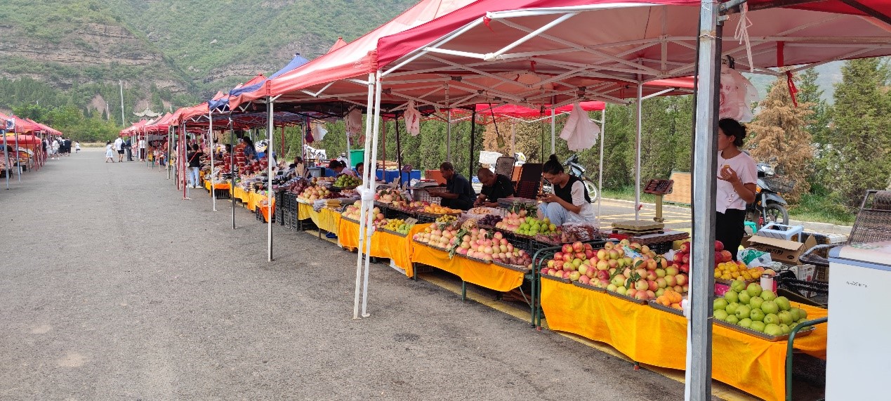 但值得称赞的是景区出口摆满了当地特色农产品,例如苹果、酸枣、葡萄、桃等,将旅游资源与当地农业结合,极大的促进了附近村镇的发展,为当地乡村振兴提供了帮助。