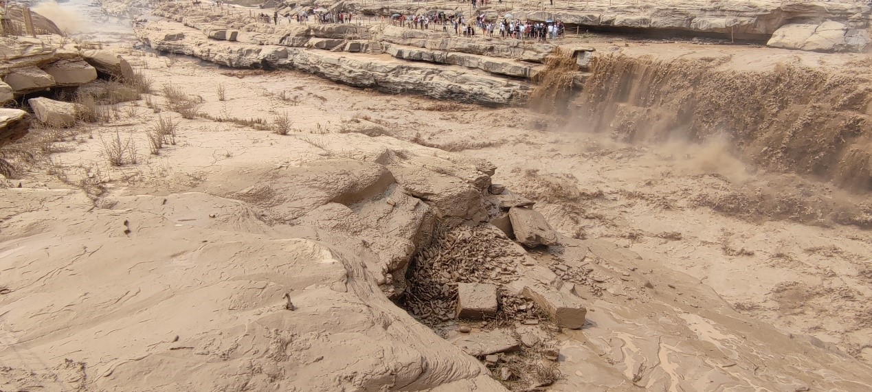 社会实践团随后调研了当地生态保护情况。经过实践团观察发现,黄河流势较缓区域基本没有塑料垃圾,景区也配备了清洁人员清理瀑布附近游客留下的垃圾。但瀑布附近地面仍有少量垃圾,瀑布落下区域有较多塑料垃圾若隐若现,黄河生态保护仍需加强。