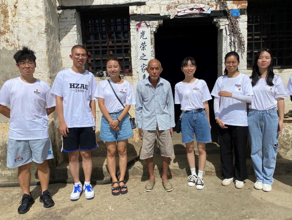 8月22日,团队师生前往全国爱国主义教育示范基地大悟县新四军五师司令部旧址参观,追寻红色足迹,感悟革命精神。在纪念馆,一件件文物展现了那段革命岁月,新四军奋勇顽强的斗争历史深深地感染了团队师生。在调研过程中,一间老平房门上挂着的“光荣之家”的牌子吸引了师生的注意,屋内居住的是一位90岁的革命亲历者,严爷爷。“我孙子曾在新疆服过五年兵役,守卫边疆保卫祖国,所以我们家才有这块牌子!”严爷爷一边为师生烧着开水一边骄傲地述说着。严爷爷激动地介绍道:“前面的旧址就是当时我的家,在我十几岁时,李先念师长就住在我们家,和我们一起吃饭。李先念师长经常半夜带着军队悄悄离开执行任务,第二天白天才回来,翻山越岭非常不容易。”在严爷爷的家中,师生们还见到了李先念师长当年和他们同住时留下的生活用品。