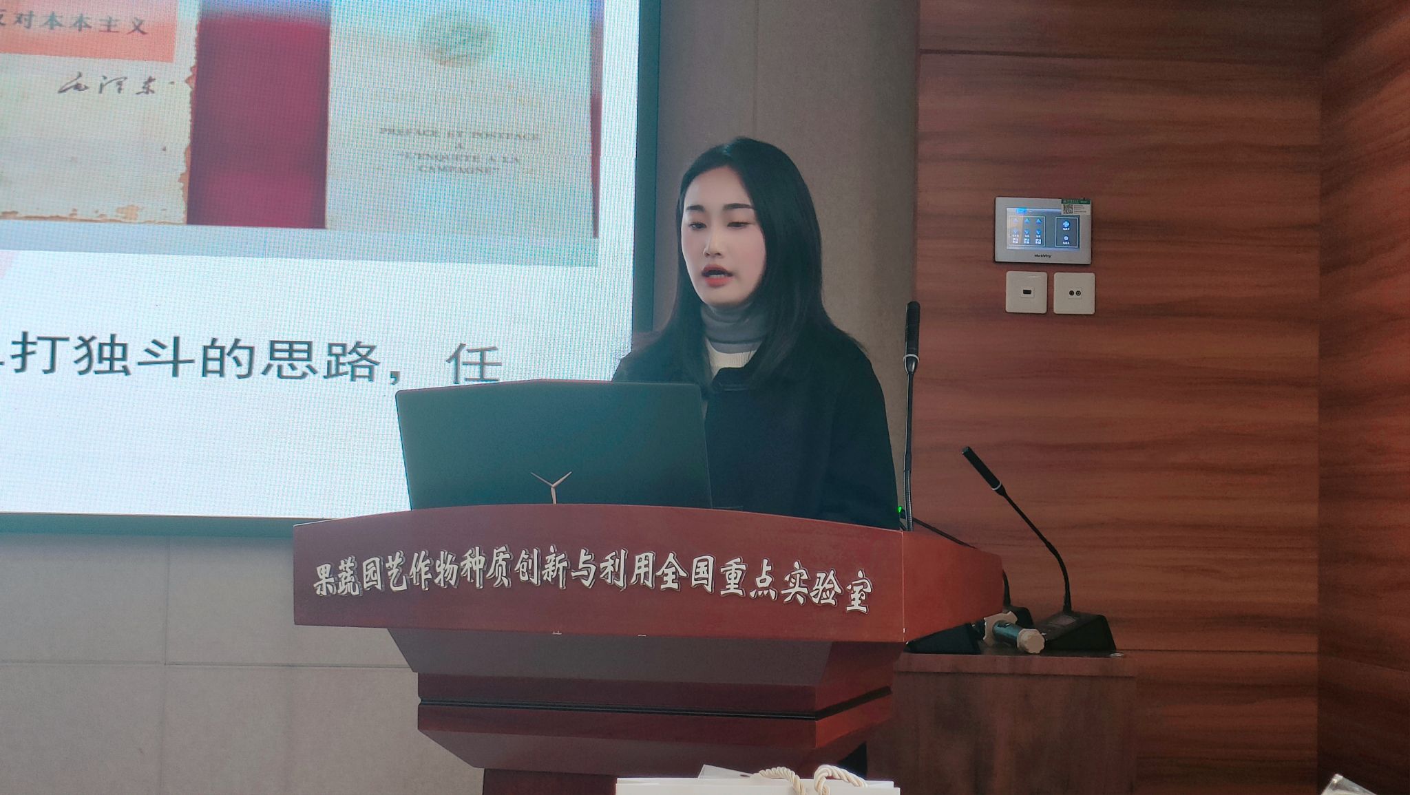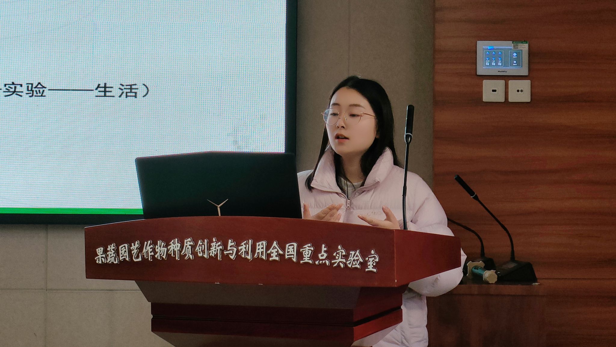 马渝婷则聚焦于甜柿分子育种研究,在分享会中介绍了自己在科研方面取得的丰硕成果,包括发表JCR一区论文、获得多项国家发明专利及软件著作开发。她深入讲解了日本甜柿与中国甜柿基因型的差异,以及通过分子标记技术进行遗传育种的研究过程,如CPCNA连锁分子标记的开发与应用,为果树育种研究提供了新的思路与方法。同时,她还分享了自己在思想政治、班级管理和志愿服务中的经历与感悟。作为一名中共党员和班长,她积极参与爱国主义活动,组织班级活动,热心志愿服务,以实际行动诠释了责任与担当,展现了一名优秀研究生的全面素养。