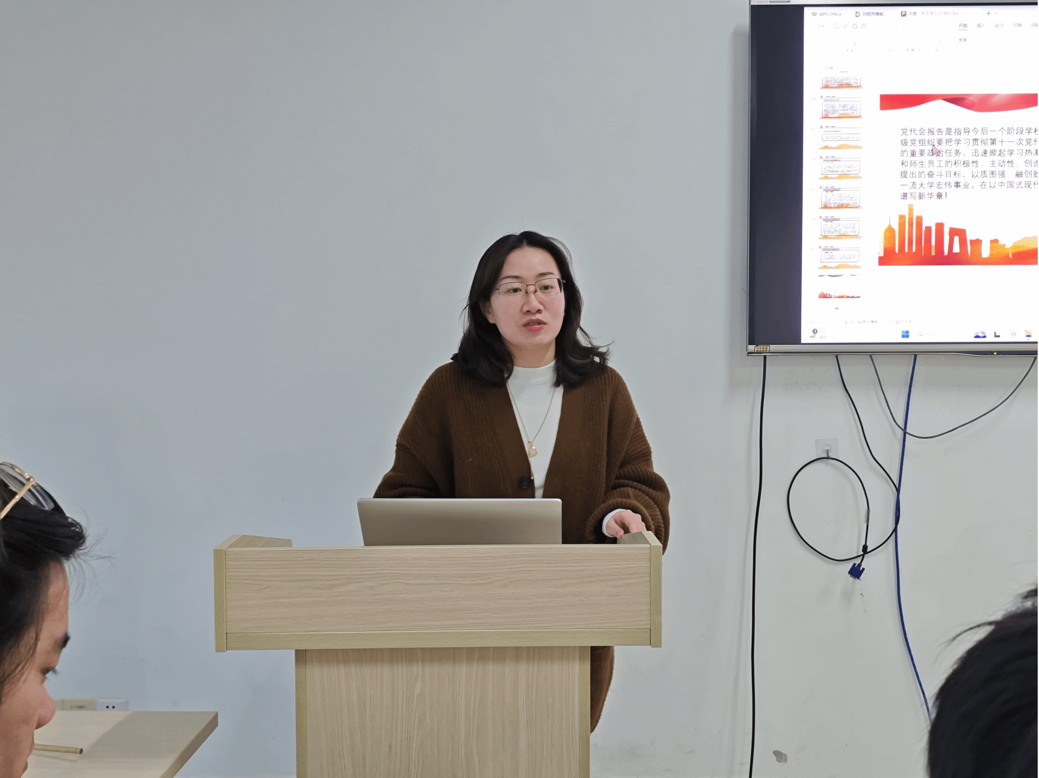 会议伊始,肖莉同志领学了学校第十一次党代会报告。她提到支部成员要牢记习近平总书记殷殷嘱托,以立德树人为根本、强农兴农为己任,以质图强、融创致新,奋力谱写建设特色鲜明世界一流大学新华章,为强国复兴和人类福祉作出新的更大贡献。