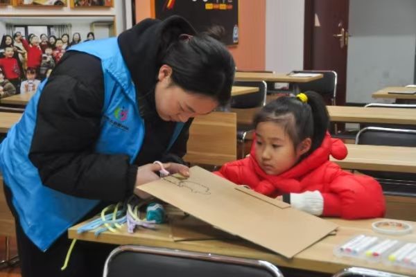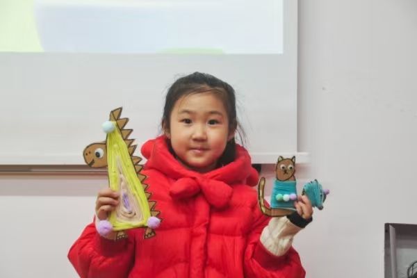 知识讲解之后,活动进入了创意无限的DIY环节。小朋友们拿起了废纸壳、毛线、扭扭棒和剪刀,在志愿者的帮助下进行手工制作。他们发挥想象力,在纸板上勾勒图案,用剪刀细心剪裁,再涂上五彩斑斓的颜色,缠上毛线或扭扭棒,一个个栩栩如生的小猫、小恐龙便跃然眼前。原本废弃的纸板在小朋友们的巧手下焕然一新,DIY活动取得圆满成功。在动手实践中,小朋友们不仅体会到了创作的快乐,更点燃了他们内心对环保的创作之火。