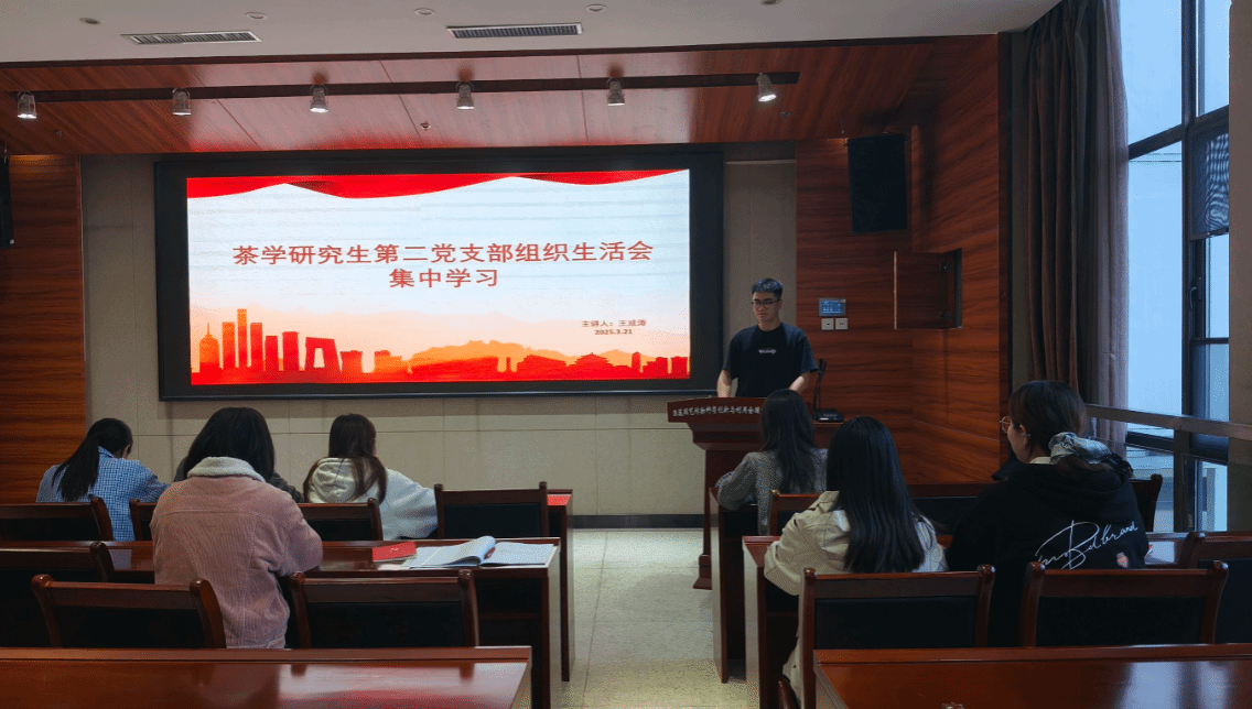3月21日晚,茶学研究生第二党支部于园林南楼204室开展2024年度组织生活会暨三月主题党日活动,会议由党支部书记王成涛同志主持。