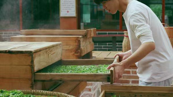 实践期间,在恩施玉露技艺第十三代传承人蒋洪志的带领下,团队成员沉浸式学习并上手操作恩施玉露非遗制作技艺。蒋洪志师父向团队成员详细讲解了恩施玉露制作技艺的历史渊源与文化内涵,随后便带领大家开启了紧张而充实的制茶之旅。在鲜叶摊放环节,成员们仔细观察叶片状态,根据鲜叶的含水量和天气情况,科学控制摊放时间与厚度,为后续工序奠定基础。蒸汽杀青与锅炒杀青两种杀青方式的学习,让团队成员深刻感受到传统技艺的精妙之处。蒸汽杀青时,氤氲的热气中,成员们全神贯注地把控蒸汽温度与时间,确保鲜叶快速钝化酶活性,保留茶叶的鲜爽滋味;而古法锅炒杀青则更考验技艺,蒋洪志师父亲自示范,手把手教导成员们掌握锅温与翻炒力度,在不断实践中,大家逐渐体会到 “看茶做茶” 的精髓。随后的搧干水汽、炒头毛火、揉捻等工序环环相扣,团队成员分工协作,每一个动作都力求精准。在整形上光工序中,双手在锅中不断变换手法,通过推、压、磨、荡等动作,赋予茶叶紧细圆直的外形;焙火提香时,大家守在焙笼旁,时刻关注火候与时间,让茶叶散发出独特的馥郁香气。经过多道工序的精心打磨,2 斤半色泽翠绿、香气清高、滋味鲜醇的恩施玉露终于诞生。