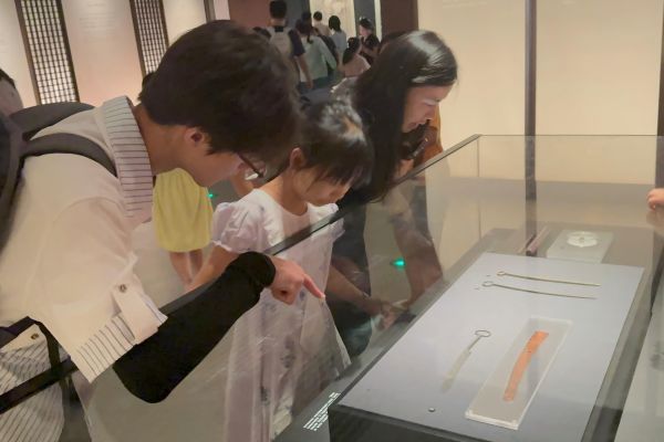实践首日,团队成员在北馆展厅主动和游客互动。他们观察游客看文物的神情,听游客对文物的看法。交流中发现,不少游客对荆楚文物“眼熟但不熟悉”。比如提到曾侯乙编钟,有游客知道是湖北的重要文物,却讲不清它的具体作用;说起越王勾践剑,很多人只知道它有名,对背后的历史故事和工艺特点了解不多。这让实践团意识到,大众和荆楚文化之间存在认知差距,也更明确了后续“让文物活起来”的方向。