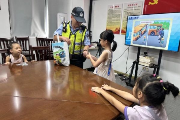 7月15日,暑期公益课堂的第二课准时开课。针对暑期高发的儿童交通事故,陈泫冰等志愿者与工作人员聚焦安全意识,请来交通大队的交警展开趣味互动讲座,深入浅出地普及交通安全知识,为孩子们的安全出行增添保障。在充满快乐的讲座中,孩子们将交通安全知识记在了心里,有效地降低了交通安全事故的发生率。