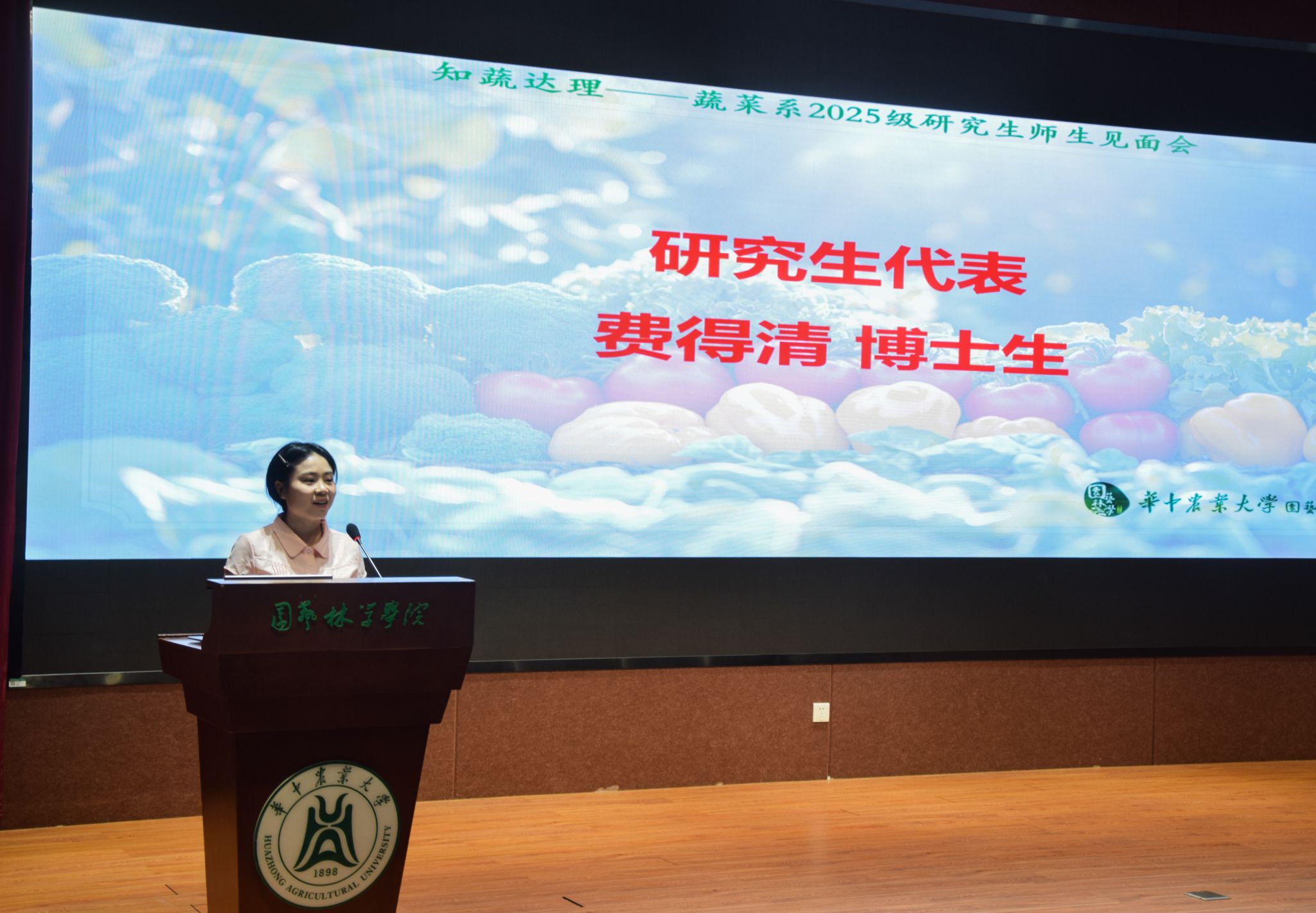 蔬菜系主任张俊红老师为新生详细介绍了学科情况,从蔬菜系的悠久发展历史、实力雄厚的科研团队,到历年丰硕的科研成果及最新研究进展,再到学科在社会服务与人才培养领域的实践与成效,让新生对蔬菜系有了全面且深入的认知。同时,他向全体新生表达热烈欢迎,期待大家能快速融入蔬菜系大家庭,在学科平台上积极探索、成长成才,为蔬菜学科发展注入新活力。