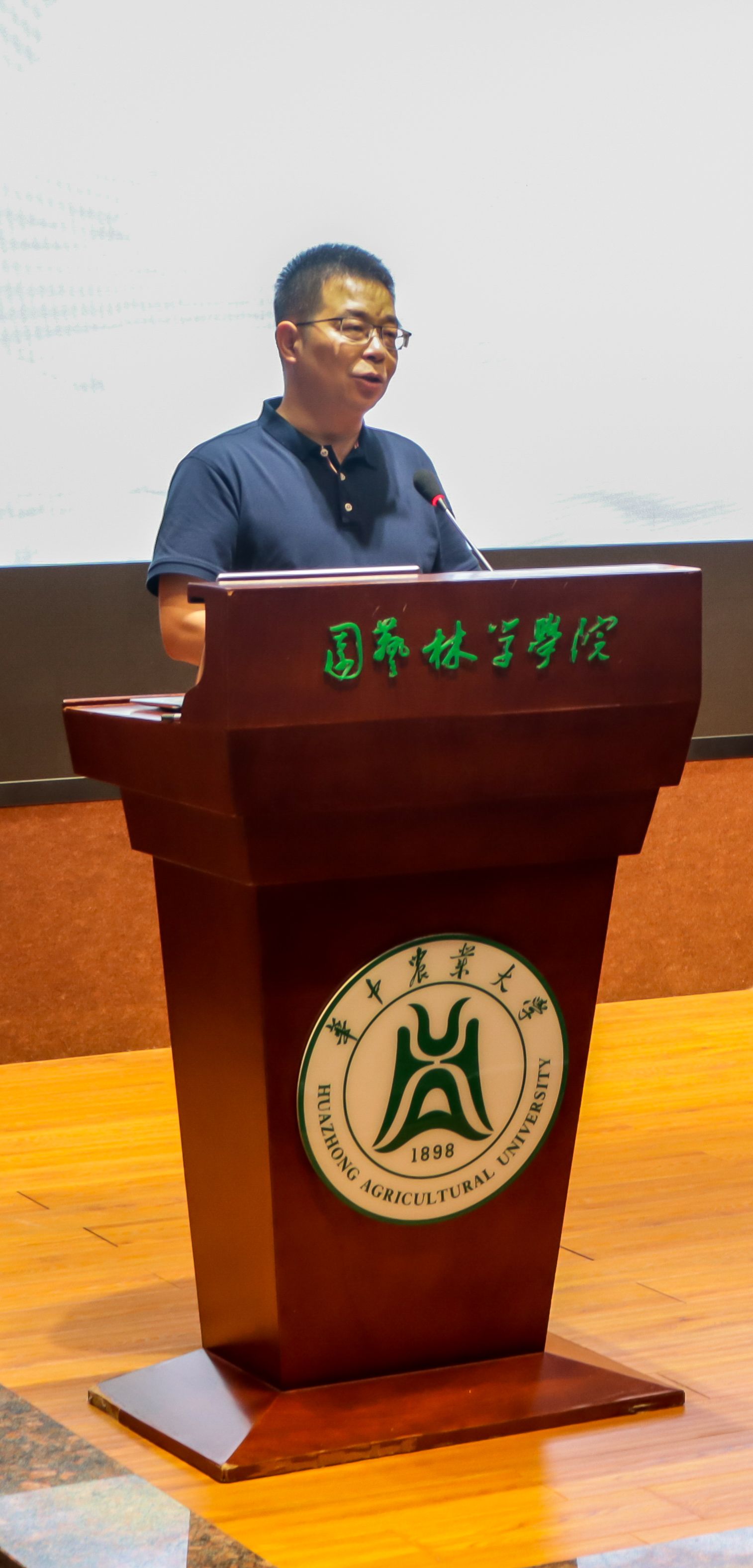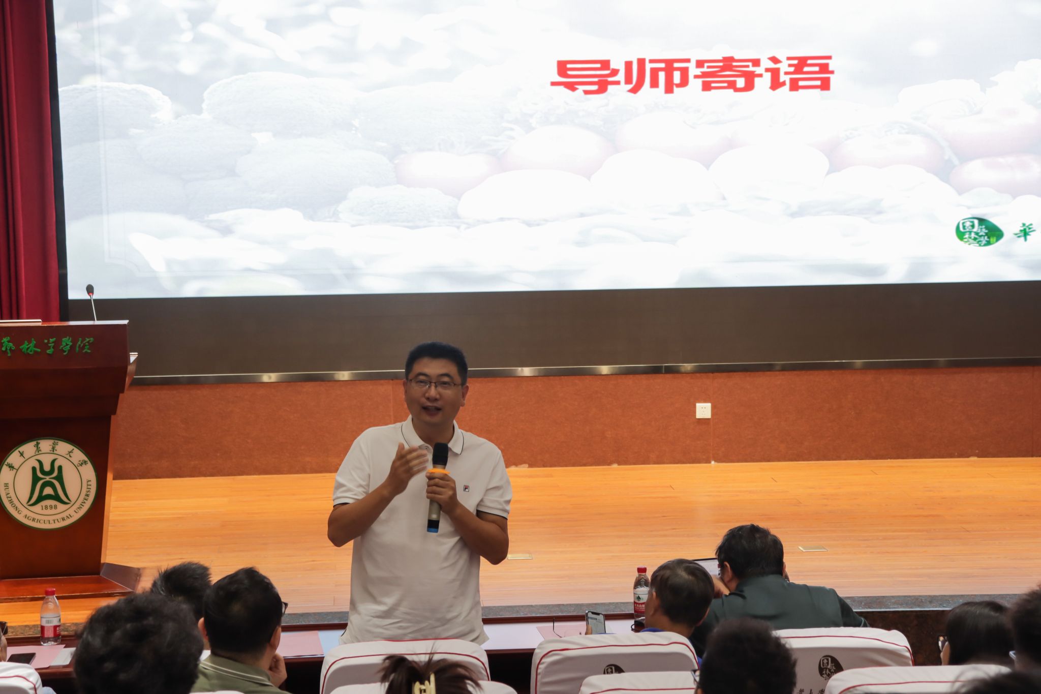 学院党委书记龙健飞老师首先对研究生新生的到来表示热烈欢迎,并对新生提出三点要求:一是夯实基础,扎实学习基础知识与基本操作技能;二是沉心治学,秉持“板凳甘坐十年冷”的态度,摒弃浮躁、不张扬盲从,牢记科学研究无捷径,需脚踏实地;三是恪守学术道德,严守学术底线,以严谨态度对待科研。龙健飞老师祝愿新同学在华农的求学时光里收获成长,取得更多成果。