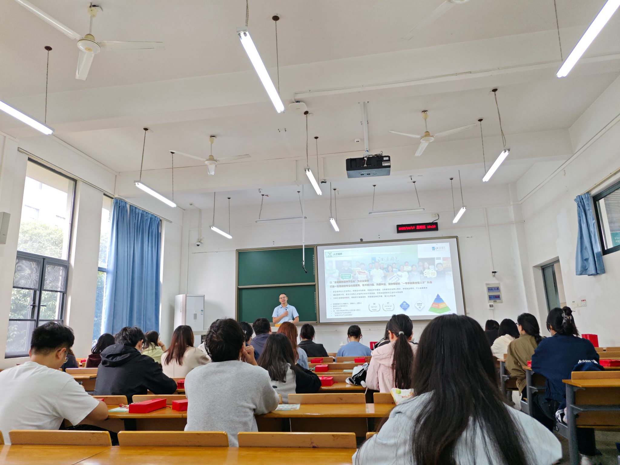 在互动环节,同学们积极提问,就岗位薪资结构、转正待遇、具体工作内容、技术能力要求、职业发展路径等问题与徐文斌进行了深入交流。现场气氛热烈,不少同学在宣讲会后与徐文斌进行咨询交流,并表达了加入江淮园艺的强烈意愿。