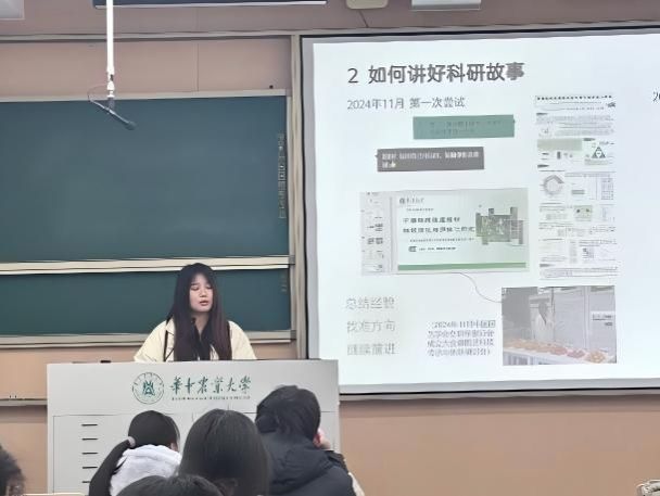 2023级园林植物学硕士生张欣茹结合自身获奖经历,围绕“如何讲好科研故事”与“保持热爱”展开分享。她系统介绍了从文献积累、技术规划到成果梳理的科研叙事方法,并强调尽早撰写论文与保持实验记录的重要性。此外,她分享了通过正念练习、生活观察与阶段奖励,在科研中保持动力与身心平衡的体会,鼓励同学们在专注学术的同时,热爱生活、持续成长。