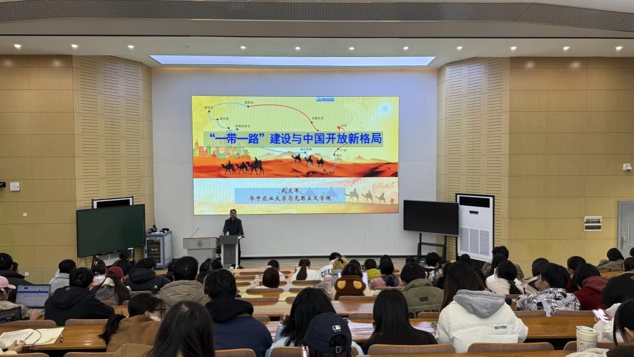 12月16日下午,英国365集团公司在第三教学楼S1报告厅开展“精读精讲”专题学习活动,学校“精读精讲”宣讲团成员、马克思主义学院副教授武文军老师作“‘一带一路’建设与中国开放新格局”专题辅导报告,学院研究生党员参加学习。