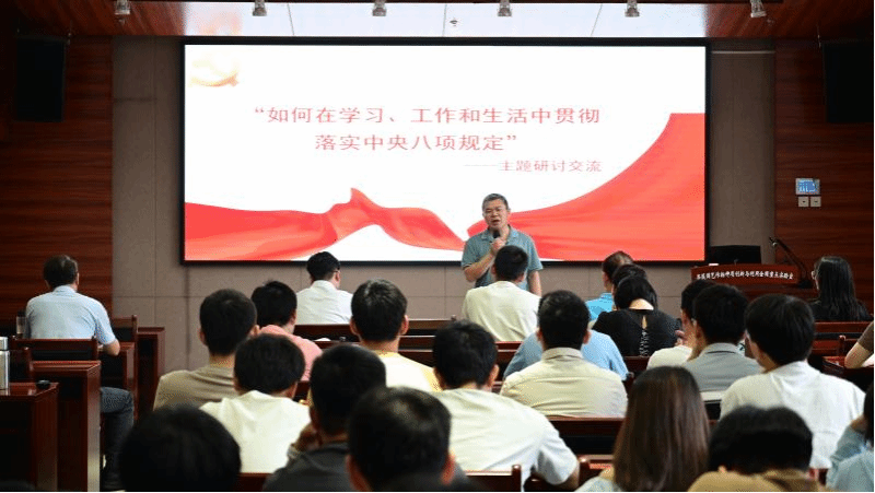支部副书记王沁瑶领学“坚守初心使命,践行中央八项规定精神”,系统梳理了中央八项规定的提出背景与核心要义,结合改进调查研究、精简会议活动、规范出访等具体条款,阐释了厉行节约、反对浪费、廉洁从政的精神实质。她强调,中央八项规定是新时代共产党人的作风标尺,党员同志必须将其内化于心、外化于行。
