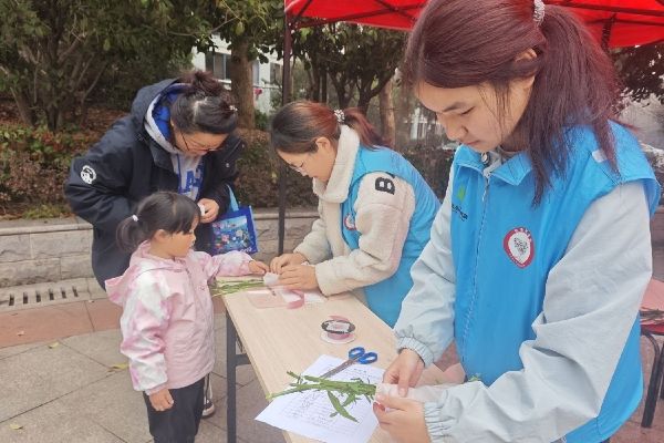 【核心提示】2026年3月21日上午,我院张瑜服务队于华农西社区开展“闲物传暖意,爱心绽花韵”主题公益活动,以闲置物品置换花材的形式,结合花艺制作与园艺科普,让居民在实践中感受自然之美,践行绿色环保与志愿服务精神。