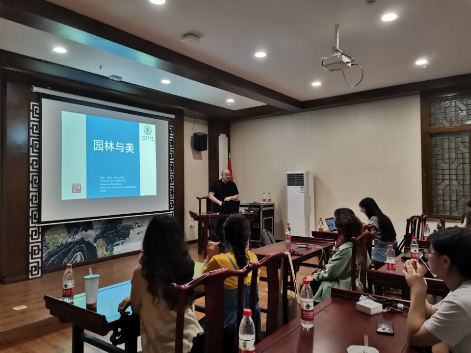 6月10日晚,由我院承办的“园林与美”活动在大学生活动中心耕读学堂顺利举办。本次活动由我院教授张斌主讲,从何为园林何为美、东方古代园林、中亚古代园林、西方古代园林、现代风景园林、身边的风景园林六个部分与同学们进行了交流分享。