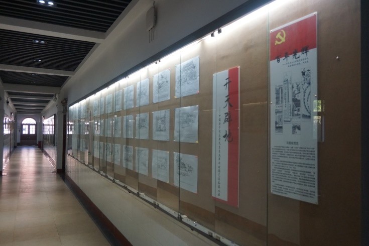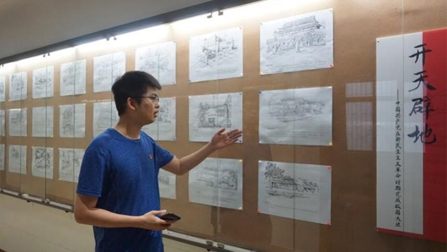 “百年光辉----手绘百年党史”速写手绘作品在景园楼一楼东侧展出 易梦妮摄