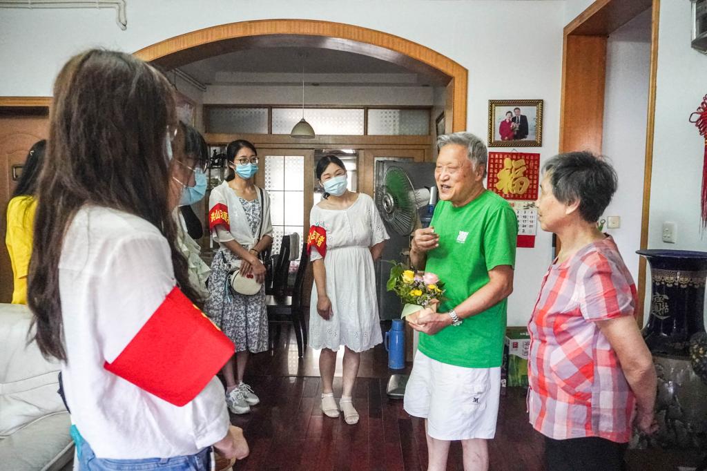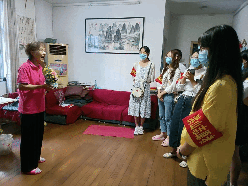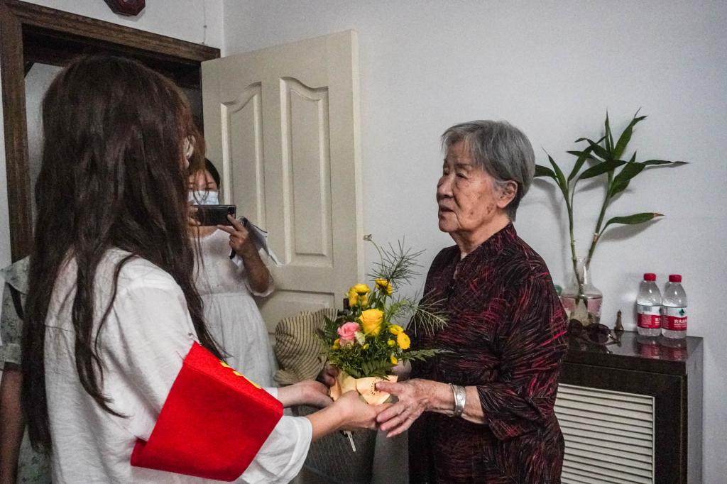 此外,同学们还拜访了72年党龄的于晶老师、95岁高龄的唐达明老师等十余位党员。同学们在国庆之际表达了对老党员的敬意,并在与他们的交谈中进行了一堂堂生动而感人的党史大课。通过这一活动,党员及张瑜服务队队员们进一步坚定了自己的理想信念,相互约定以更加努力刻苦的态度投入到学习工作生活中,积极参加志愿服务活动,学习老党员的崇高精神,将自己的青春投入到为人民服务中去。