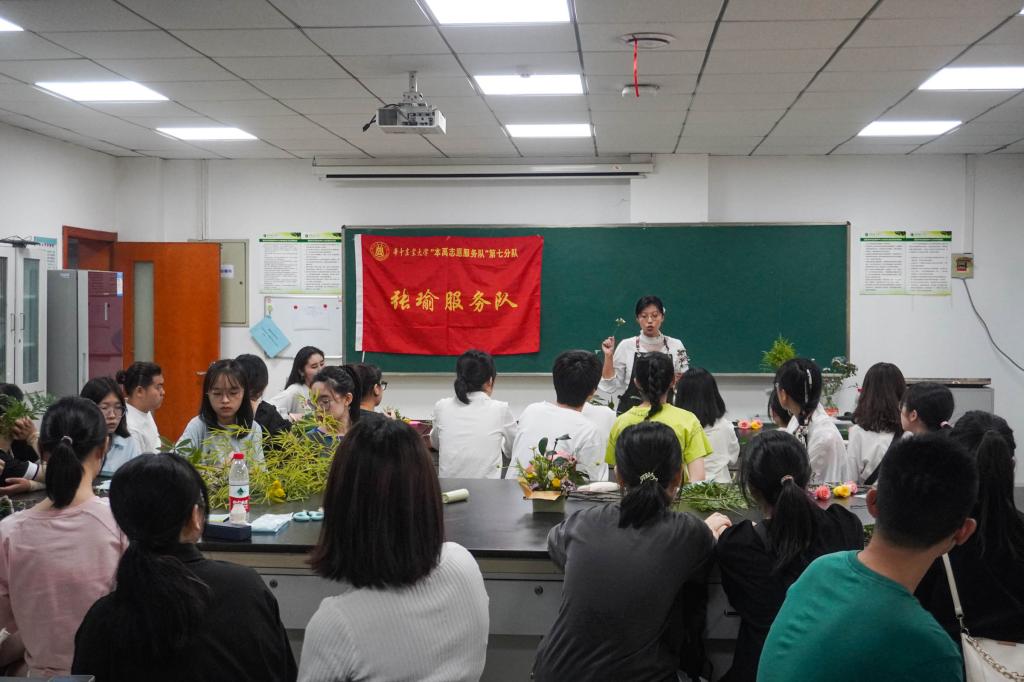 上午,张瑜服务队组织园林专业21级新生于园林楼进行插花活动。在工作人员的教学和指导下,园林专业新生对专业有了新的认识和体验,对未来的学习生活有了更大的兴趣。当同学们得知自己的作品将送给老党员时,以更加认真的态度积极参加活动,顺利完成了插花任务,在国庆当天表达了对党和国家的敬意。