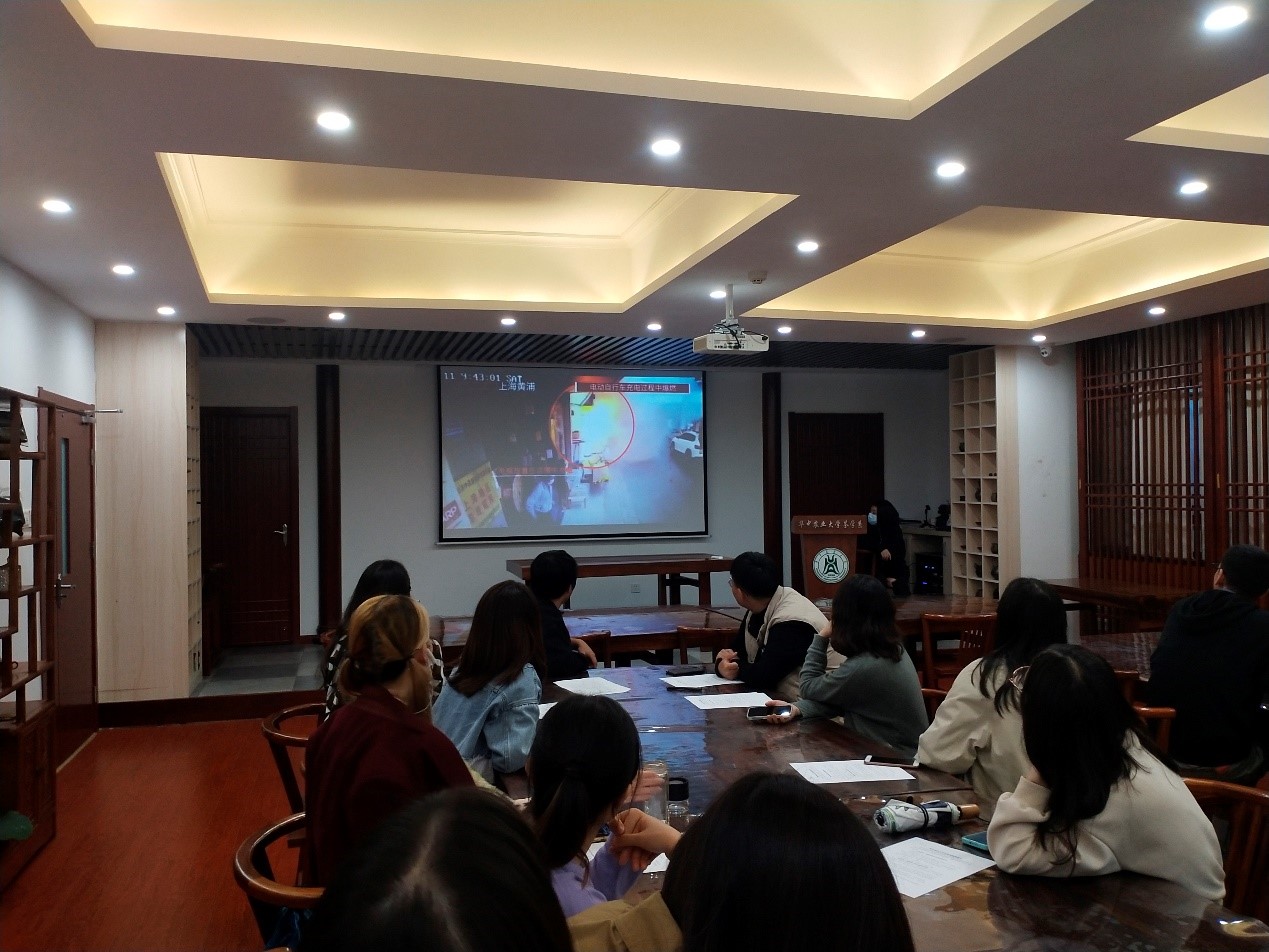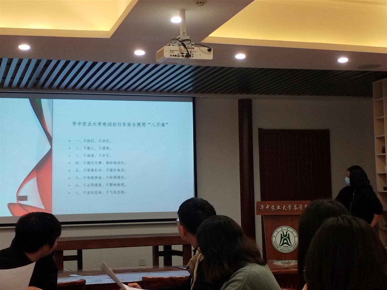 11月1日晚, 20级茶学硕士班于园林北楼耕读茶室开展安全教育主题班会,班长叶夏莉对关于电动自行车安全的文件进行宣读。