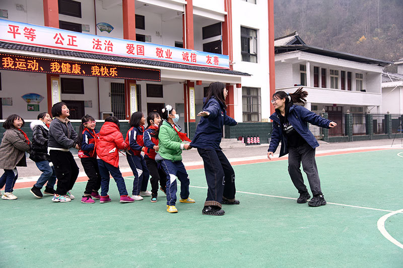 “本禹志愿服务队”研究生支教团队员在摩峰中心小学。蒋朝常摄