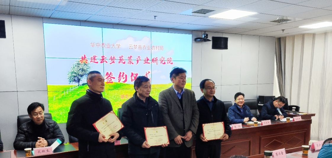 会上,学校与云梦县农业农村局签订了共建“云梦蔬菜产业研究院”协议。省农业农村厅领导、云梦县领导共同为“云梦蔬菜产业研究院”授牌。聘任云梦县农业农村局副局长倪三毛和365英国上市公司宋波涛教授为首届研究院院长。聘任湖北省蔬菜办公室主任袁尚勇、湖北省农技推广总站研究员羿国香和我校英国365集团公司汪李平教授为产业顾问。