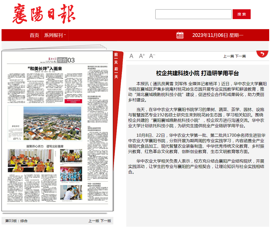 【襄阳日报】校企共建科技小院 打造研学用平台