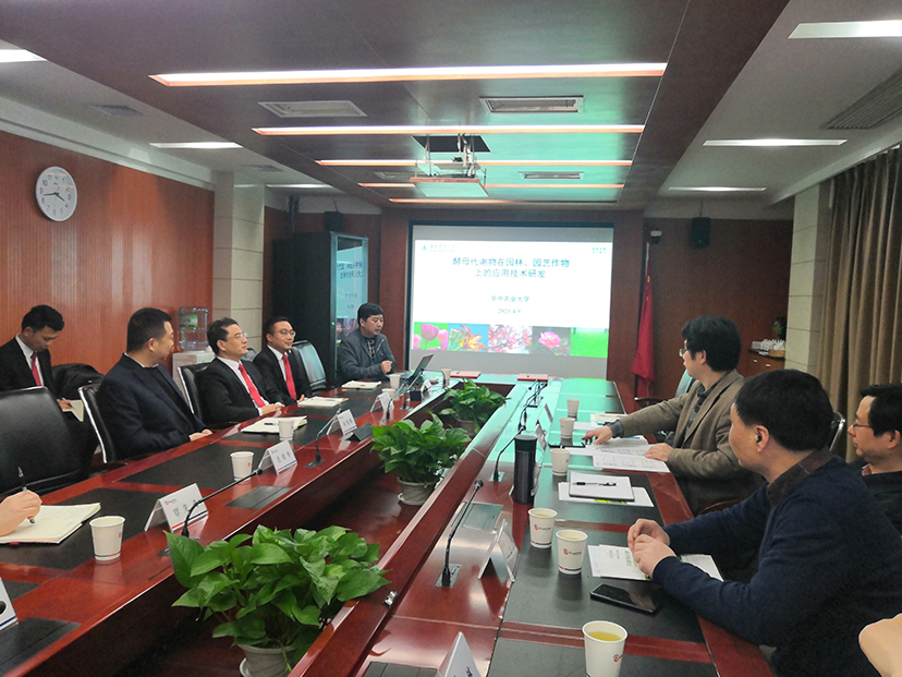 产祝龙就双方合作的背景以及前期酵母代谢物在园林植物上进行的预实验结果进行了汇报。项目组成员何燕红副教授和向林副研究员就实验过程中的问题与安琪公司员工进行了交流。
