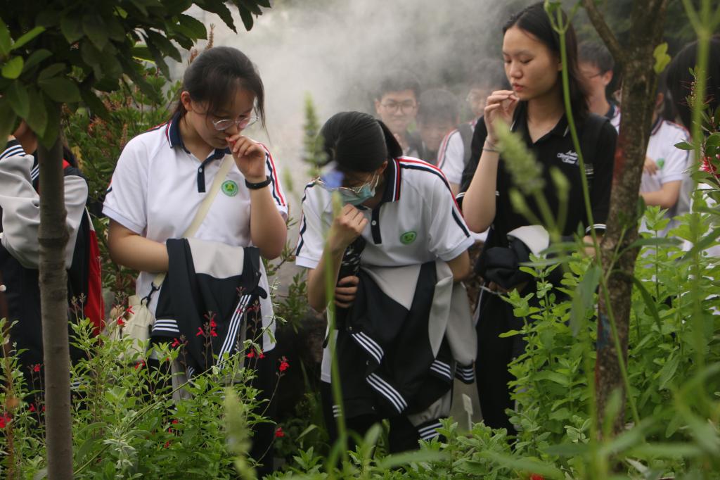 最后同学们来到了基地参观听香园和智慧温室。不同于室内的参观展览。室外的基地让大家更多的感受的是来自于大自然的植物的魅力。讲解员就芳香园的建设进行了简单的介绍,该植物种植园主要种植的都是芳香类的植物,品种繁多。在讲解员的讲解下,现场同学们也参与了互动环节,亲手去感受植物的世界,将理论和实践结合起来,通过与植物的互动感受“芳香”,通过同学们自主探索,对芳香植物有了更深的了解,拓宽了相关的知识面。
