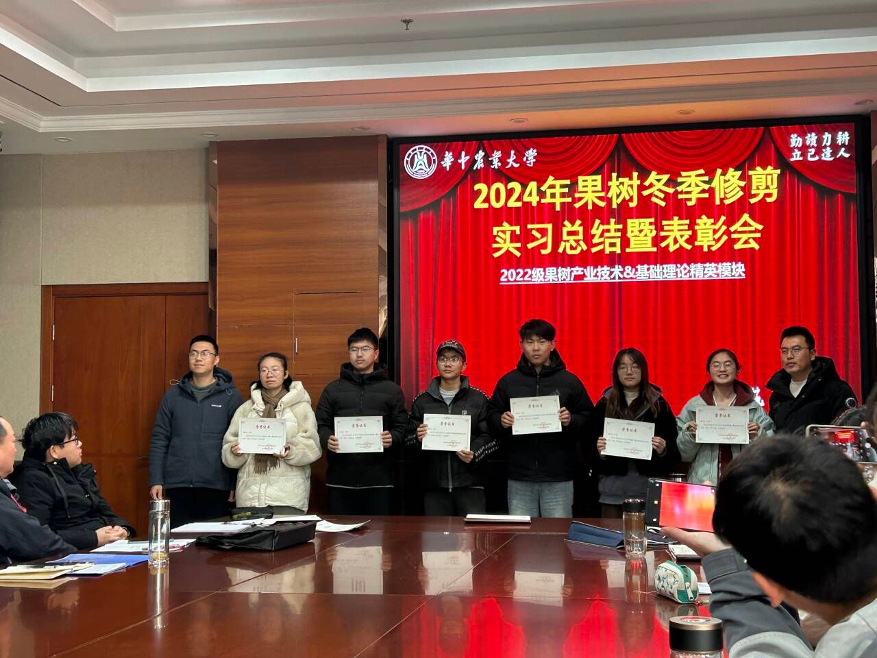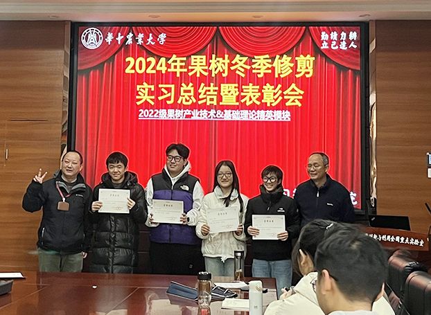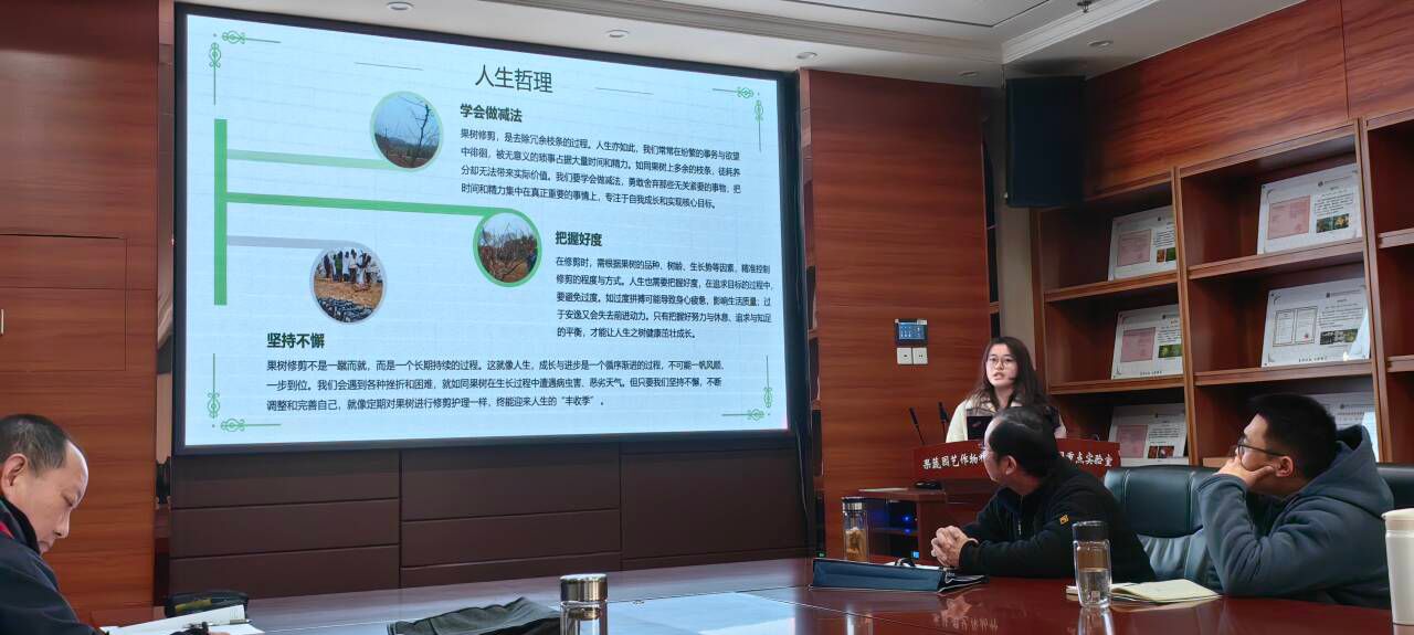 12月31日上午,2024年度果树冬季整形修剪实习总结暨表彰大会在园林南楼206会议室隆重举行,英国365集团公司周继荣副院长出席,会议由刘军伟老师主持。本次实习7个小组通过轻松愉快的微视频、制作精美的幻灯片,生动形象幽默风趣地总结了整个实习之旅,充分展示了果树修剪实习10天的所学所思所感,体现了身为农业学子肩上的责任与担当。来自园艺2201班的黄奕同学汇报时“修树也是修身,正树也是正己”的精炼总结,从哲学层面给了同学们很大启发。陶晶同学通过总结整个实习期间的思想状况和修剪技术的进步,生动形象地展现了自己的快速成长。